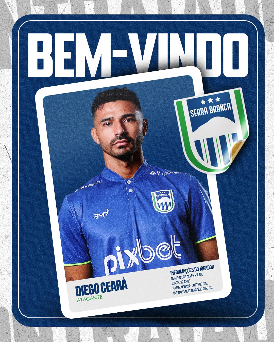 A 25ª contratação do Carcará para a temporada 2026 chega para fortalecer o setor ofensivo. Trata-se do atacante Diego Ceará, de 32 anos.