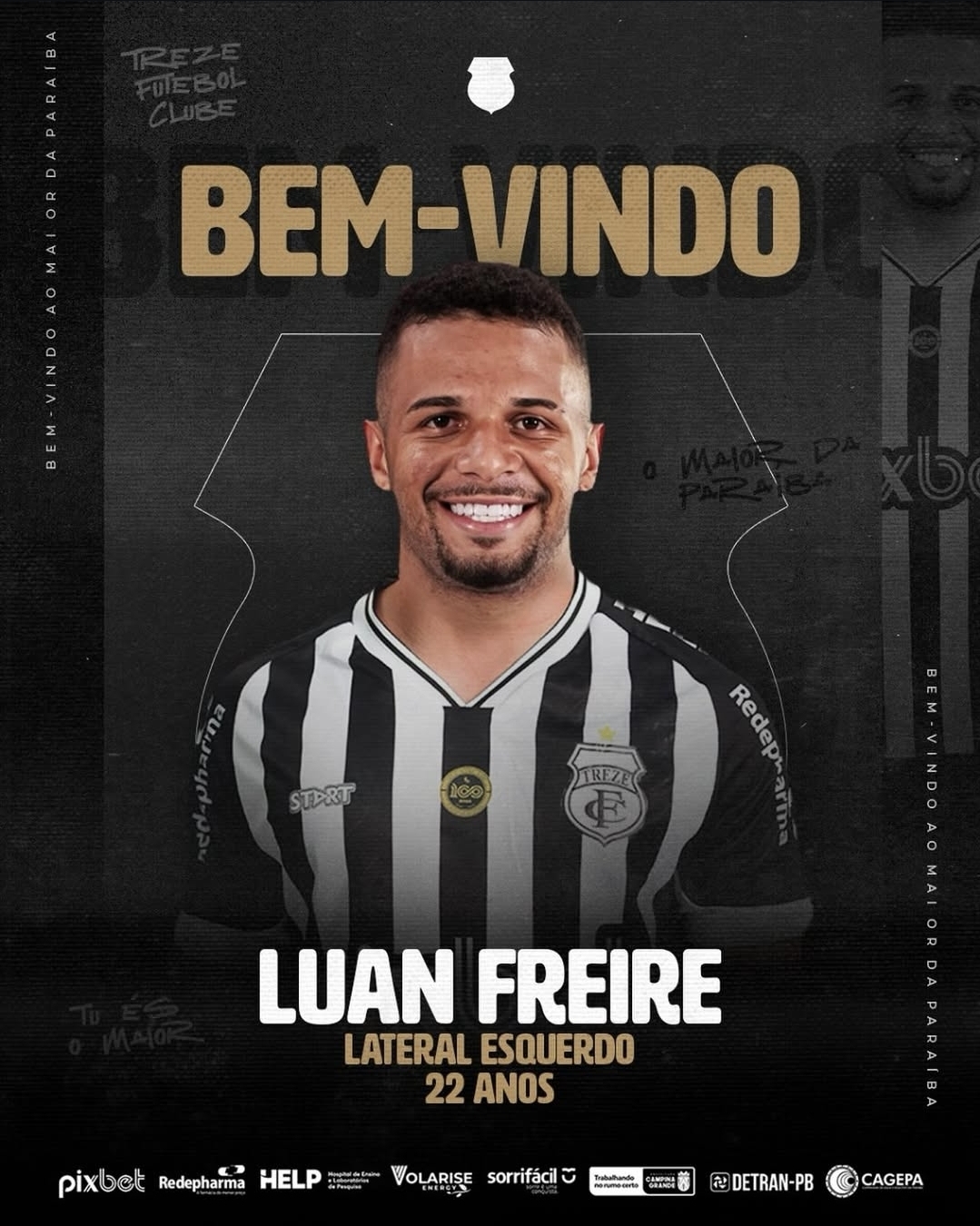 Já Luan Freire é mais um reforço do Treze para a temporada 2026!