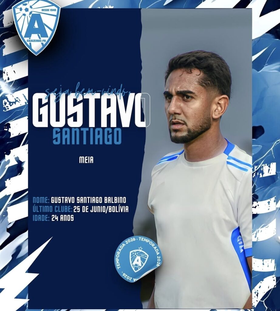 Fechando o pacote de contratações, o clube anunciou o atacante Gustavo Santiago, de 24 anos. O jogador passou por Juventus-SP e Flamengo-SP, além de uma experiência internacional pelo 25 de Junio, da Bolívia, de onde chega para integrar o elenco sertanejo.