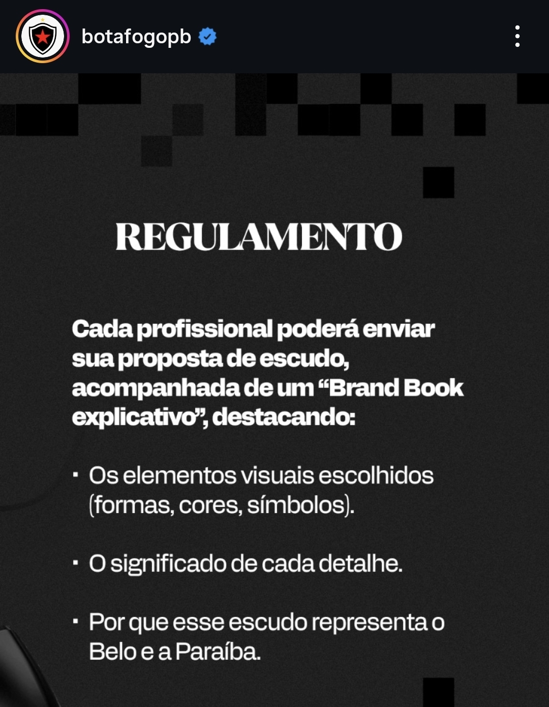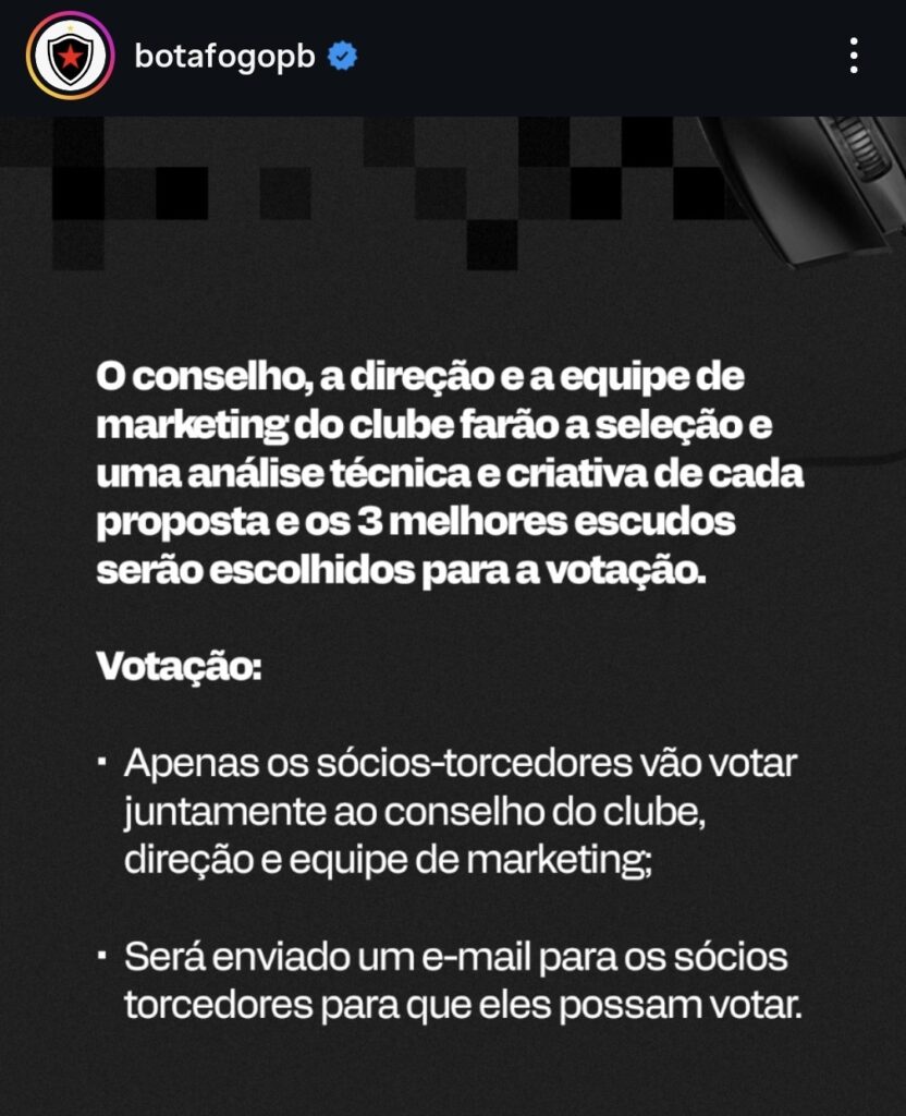 O Botafogo-PB anunciou a abertura de um concurso para a criação de um novo escudo alternativo do clube. A iniciativa busca envolver diretamente a torcida e profissionais da área criativa na construção da identidade visual do Belo.