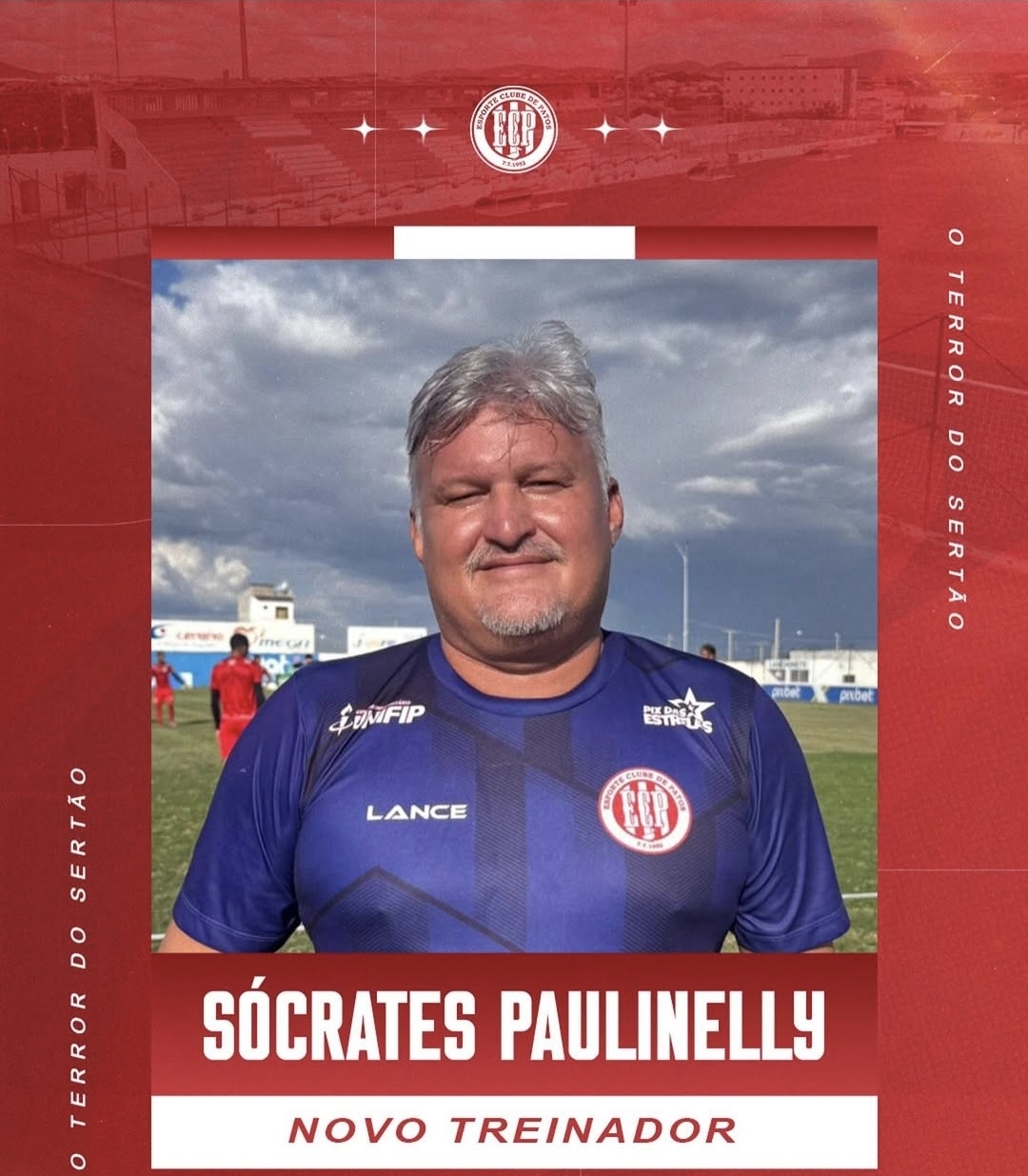 Em clima de decisão, o Esporte Clube de Patos anunciou mudanças importantes para a última rodada do Campeonato Paraibano 2026. Lutando para permanecer na elite estadual, o clube sertanejo efetivou Sócrates Paulinelly como novo treinador da equipe. Ele era auxiliar técnico de Higor Cesar, que pediu desligamento do cargo nesta reta final de competição.