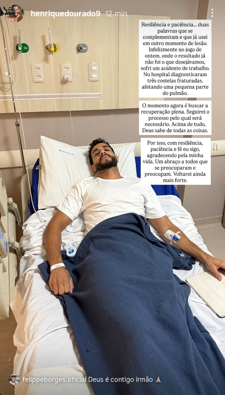 O clube ainda não divulgou um prazo oficial para o retorno do jogador, mas a expectativa é de que Henrique Dourado fique afastado por tempo considerável, dependendo da evolução clínica e da resposta ao tratamento.