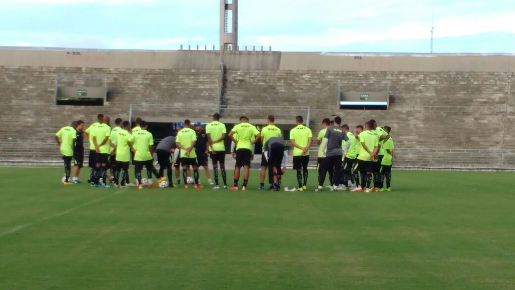 Nesta quinta-feira(01), o elenco do Botafogo-PB treinou em dois perÃodos. Na parte da manhã fez um treino na Vila OlÃmpica, no bairro dos estados. Já na parte da tarde no estádio Almeidão, como fez durante o Paraibano e Copa do Nordeste, a comissão técnica do Belo está disposta a mais uma vez esconder o jogo e faz mistério.