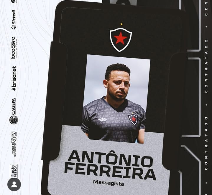 Além disso, o Botafogo-PB também passa a contar com o massoterapeuta desportivo Antônio Ferreira, que chega vindo do Fortaleza. Especialista em recuperação e cuidados físicos, Antônio terá a missão de contribuir para o bem-estar e o alto desempenho dos atletas, proporcionando um acompanhamento essencial para a manutenção da performance do elenco ao longo da temporada.