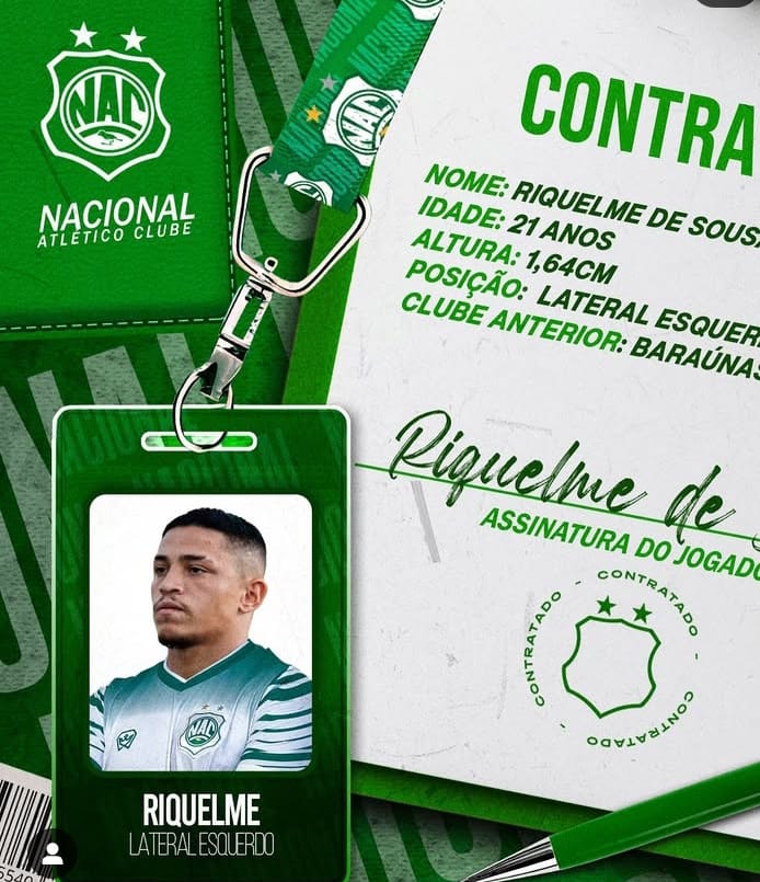 O Nacional de Patos segue se reforçando para a próxima temporada e anunciou, nesta segunda-feira, a chegada do lateral-esquerdo Riquelme, de 21 anos, como novo integrante do elenco alviverde.
