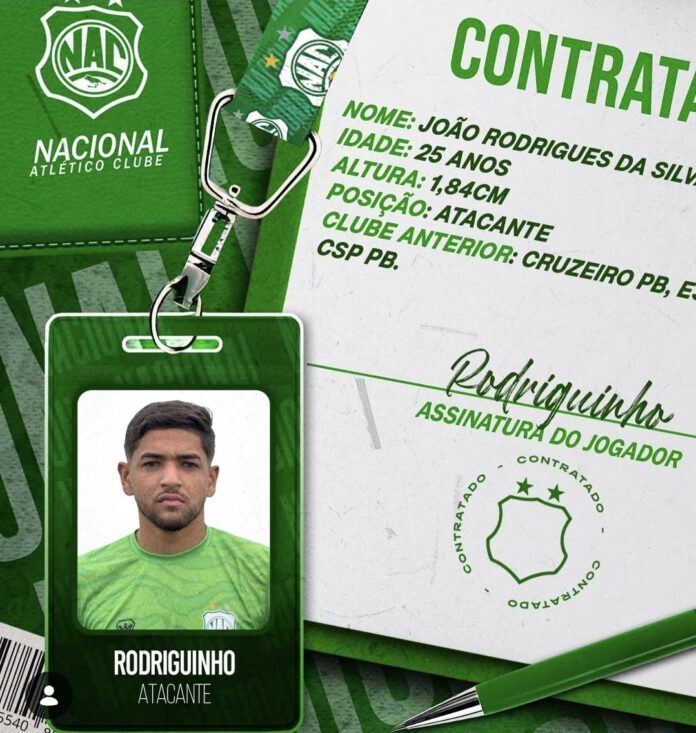 Aos 25 anos e com 1,84m de altura, Rodriguinho chega para fortalecer o setor ofensivo da equipe. O jogador já defendeu Cruzeiro da Paraíba, CSP e Esporte de Patos, acumulando experiência no futebol estadual e conhecendo bem a realidade das competições regionais.