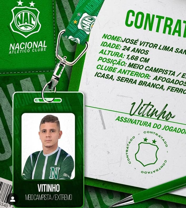 Com a experiência de já ter defendido o Nacional em outras temporadas, Vitinho chega com a missão de agregar qualidade ao setor de meio-campo. Ao longo da carreira, o jogador também vestiu as cores de clubes como Ferroviário-CE, Icasa-CE e Serra Branca-PB, acumulando bagagem no futebol nordestino.