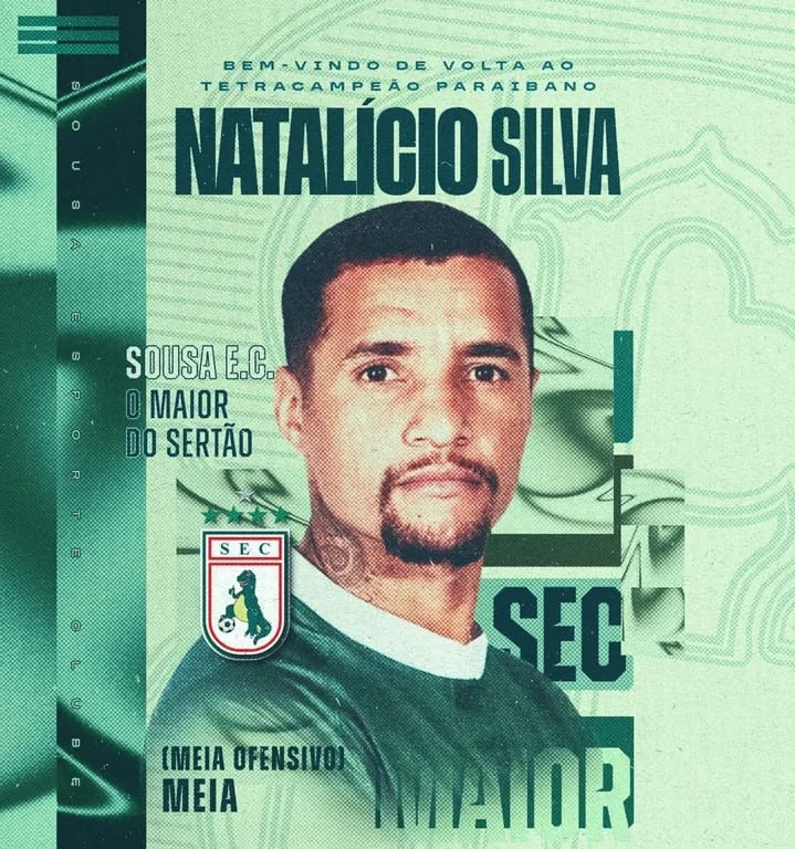 O Sousa Esporte Clube anunciou o retorno do meia Natalício, de 24 anos, para a temporada 2026. O jogador, que já defendeu as cores do Dinossauro em passagens anteriores, volta ao clube com o objetivo de fortalecer o setor de criação da equipe sertaneja.