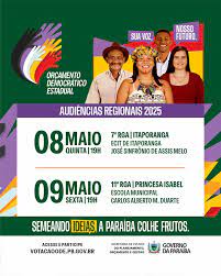 O Governo da Paraíba, por meio da Secretaria de Estado do Planejamento, Orçamento e Gestão (Seplag) e da Secretaria Executiva do Orçamento Democrático Estadual, realiza nesta quinta-feira (8), em Itaporanga, e sexta-feira (9), em Princesa Isabel, as primeiras audiências públicas de escuta popular para subsidiar o Projeto de  Lei Orçamentária Anual (PLOA) do próximo ano. Devem participar dessas audiências, a população dos 25 municípios que integram a 7ª e a 11ª Regiões Geoadministrativas.