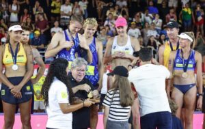 Os resultados – No feminino, a dupla brasileira Duda e Ana Patrícia conquistou a medalha de prata, sendo superada pelas americanas Cruz e Brasher, por 2 a 0 (21/16 e 21/19). Já no masculino, a medalha de ouro ficou com a dupla sueca Ahman e Hellvig, que venceu a dupla francesa Daubas e Aye, por 2 sets a 0 (21/16 e 21/18).