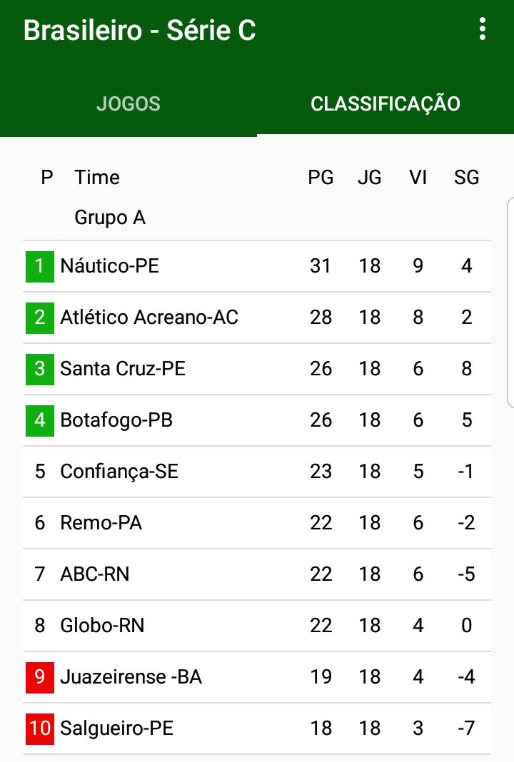 Terminou neste sábado a primeira fase da Série C do Campeonato Brasileiro. Oito clubes seguem vivos na briga pelo acesso e se enfrentam nas quartas de final. Pelo Grupo A avançaram: Náutico, Atlético Acreano, Santa Cruz e Botafogo-PB. Pelo Grupo B: Botafogo-SP, Operário-PR, Cuiabá e Bragantino.