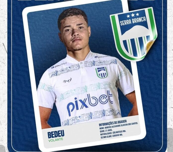 O Serra Branca SAF anuncia sua 20ª contratação para a temporada 2026: o volante Marcos Alexandre, mais conhecido como Bedeu!