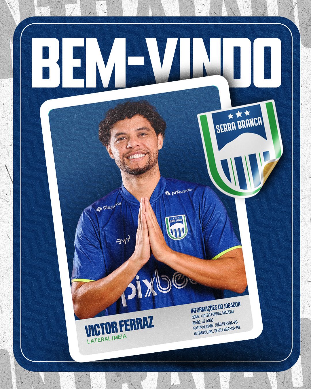 A 14ª contratação do Carcará é, na verdade, uma grande renovação: o experiente lateral Victor Ferraz, de 37 anos, que também pode atuar no meio-campo, segue vestindo o manto do Serra Branca!