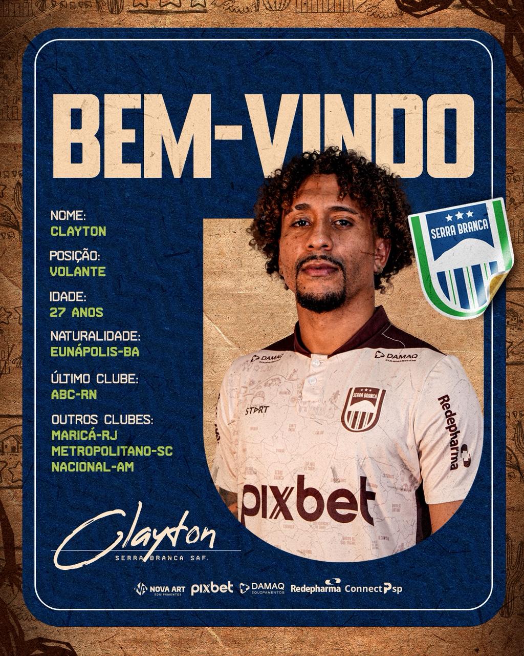O novo contratado é o volante Clayton, de 27 anos, natural de Eunápolis, na Bahia. Formado nas categorias de base do Bahia(BA), o atleta acumula passagens por equipes como Maricá(RJ), Metropolitano(SC), Nacional(AM), entre outros, e chega ao Carcará após atuar pelo ABC(RN), seu último clube.