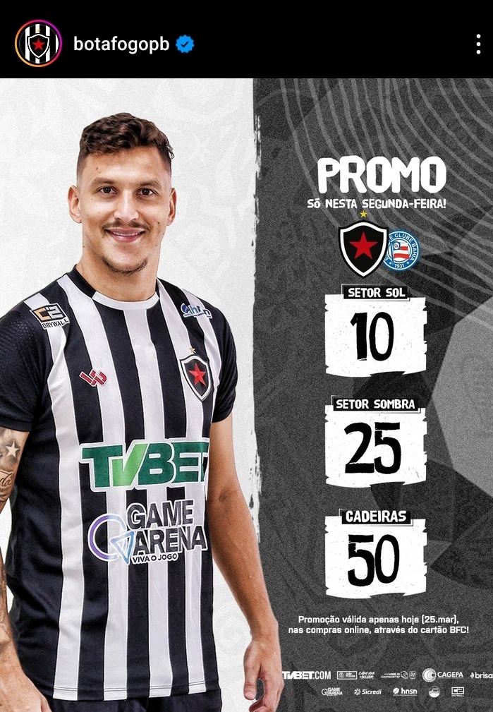 O Botafogo-PB anunciou nesta segunda-feira, preços dos ingressos promocional só para o dia de hoje, 25 de março, segunda-feira.