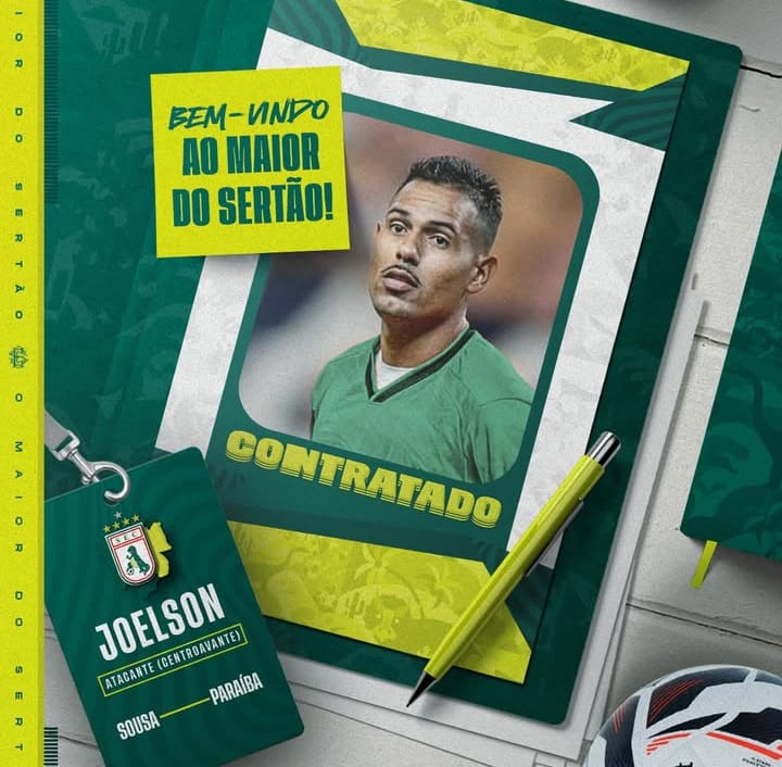 O centroavante Joelson é o novo reforço do Sousa-PB para a disputa da Série D do Campeonato Brasileiro. O jogador foi anunciado nesta segunda-feira (21) e retorna ao futebol nordestino após defender o Manauara no primeiro semestre.
