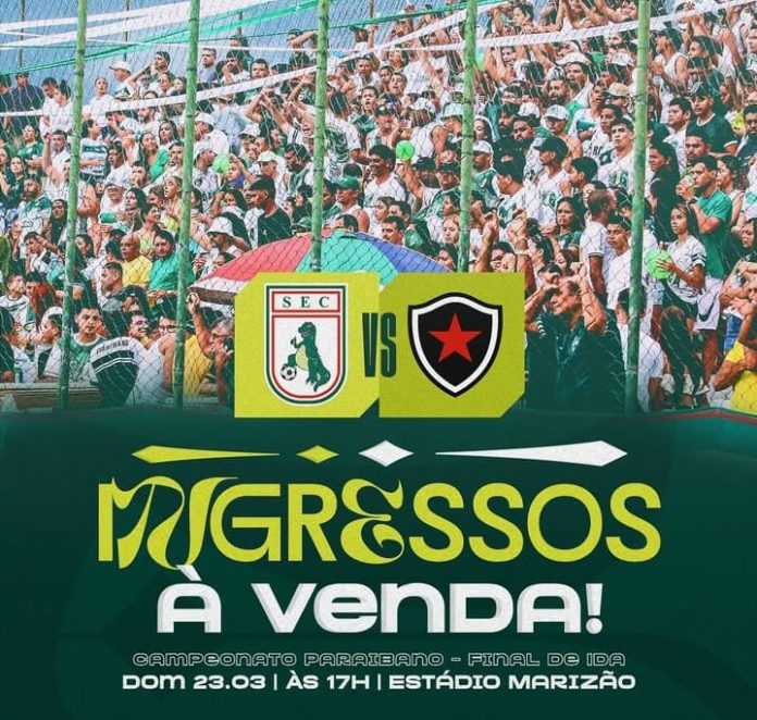 Torcedores do Sousa Esporte Clube e Botafogo-PB já podem garantir presença no primeiro jogo da grande final do Campeonato Paraibano 2025! Os ingressos estão disponíveis a partir de hoje no aplicativo oficial do clube, o “Sousa Esporte Clube”, e, a partir de amanhã, também poderão ser adquiridos presencialmente na DinoStore.