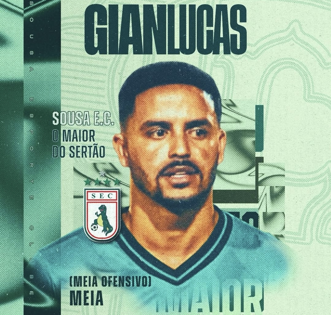O Sousa Esporte Clube confirmou mais um reforço para a sequência da temporada. O Dinossauro anunciou a contratação do meia Gianlucas Marques Santos, de 31 anos, natural de Ilhéus, na Bahia, para fortalecer o elenco na busca pelos objetivos do ano.