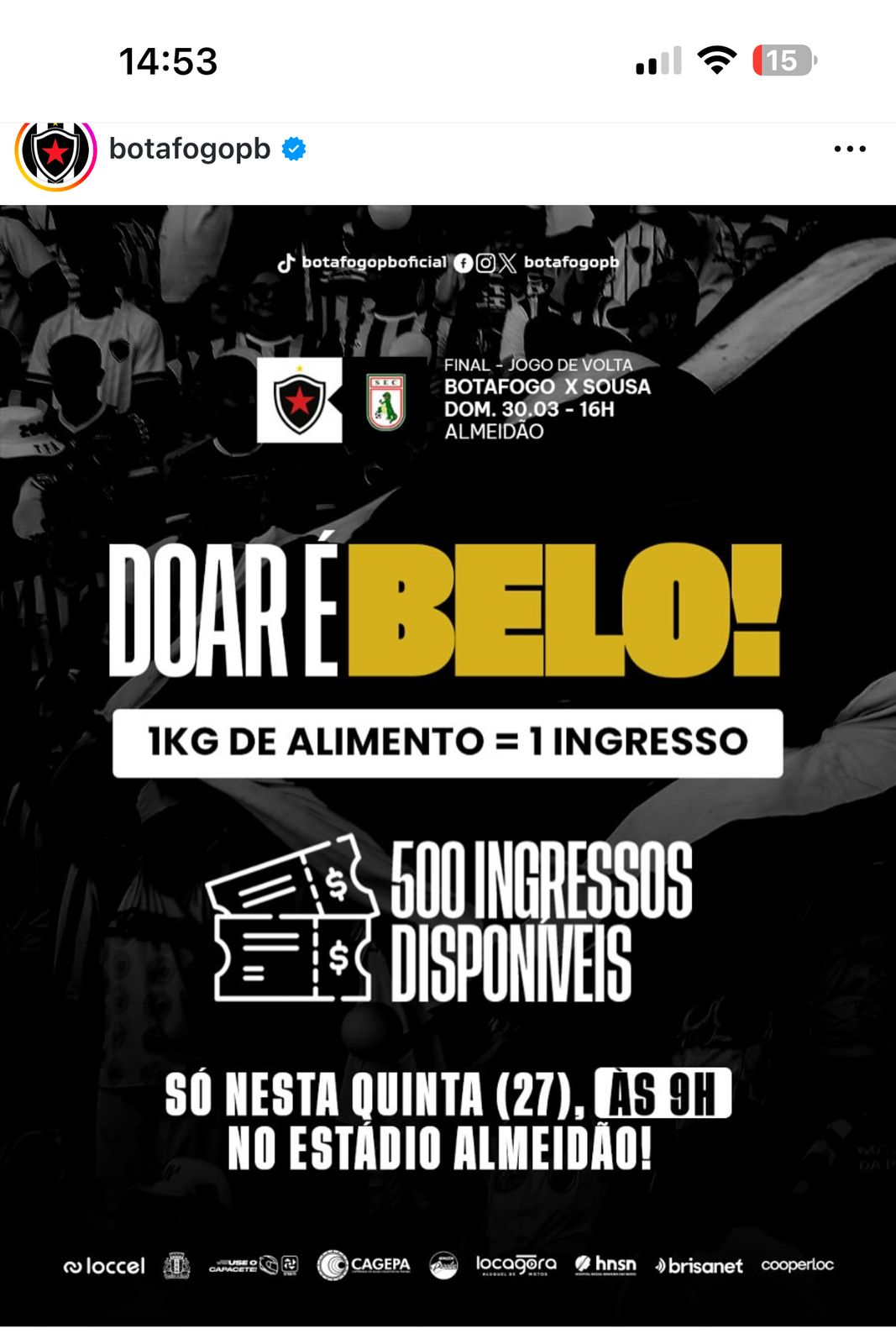 Torcida Solidária: Doe Alimentos e Garanta seu Ingresso para Botafogo-PB x Sousa